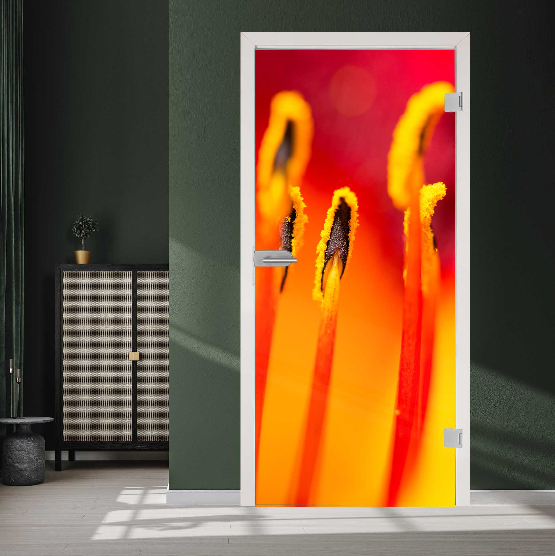 Anders wie bei anderen Anbietern, verwenden wir keine Folie, die zwischen zwei Glasscheiben montiert wird, sondern drucken direkt auf das Glas! Hierbei kommt ein ultraschneller UV-Flachbettdrucker zum Einsatz. Das Motiv "Blüte 2" zeigt die Makroaufnahme einer Blüte in den Farben rot, orange bis hin zu gelb.