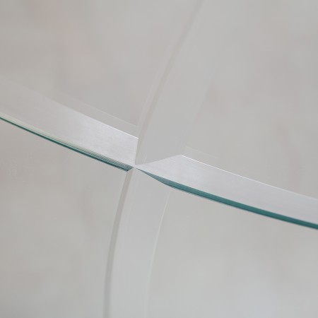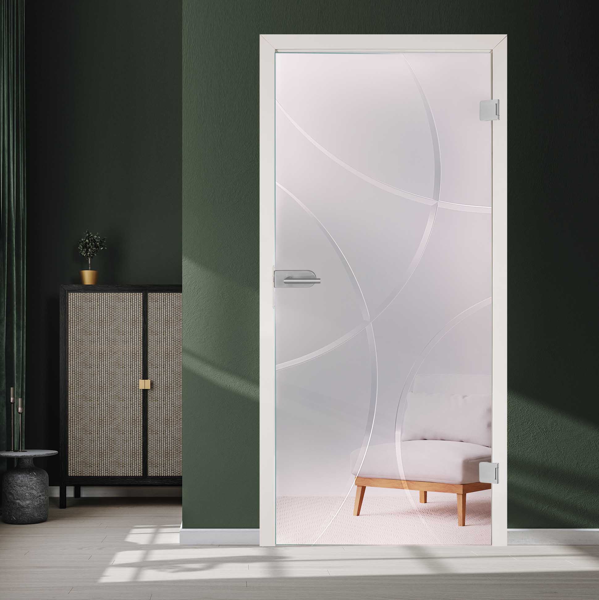 Veredelt ist die Ganzglastür "Bola" mit vier breiten Rillenschliffen. Die Kristallrillenschliffe fügen sich dezent in das durchsichtige Türblatt ein und geben der Glastür eine edle Note.