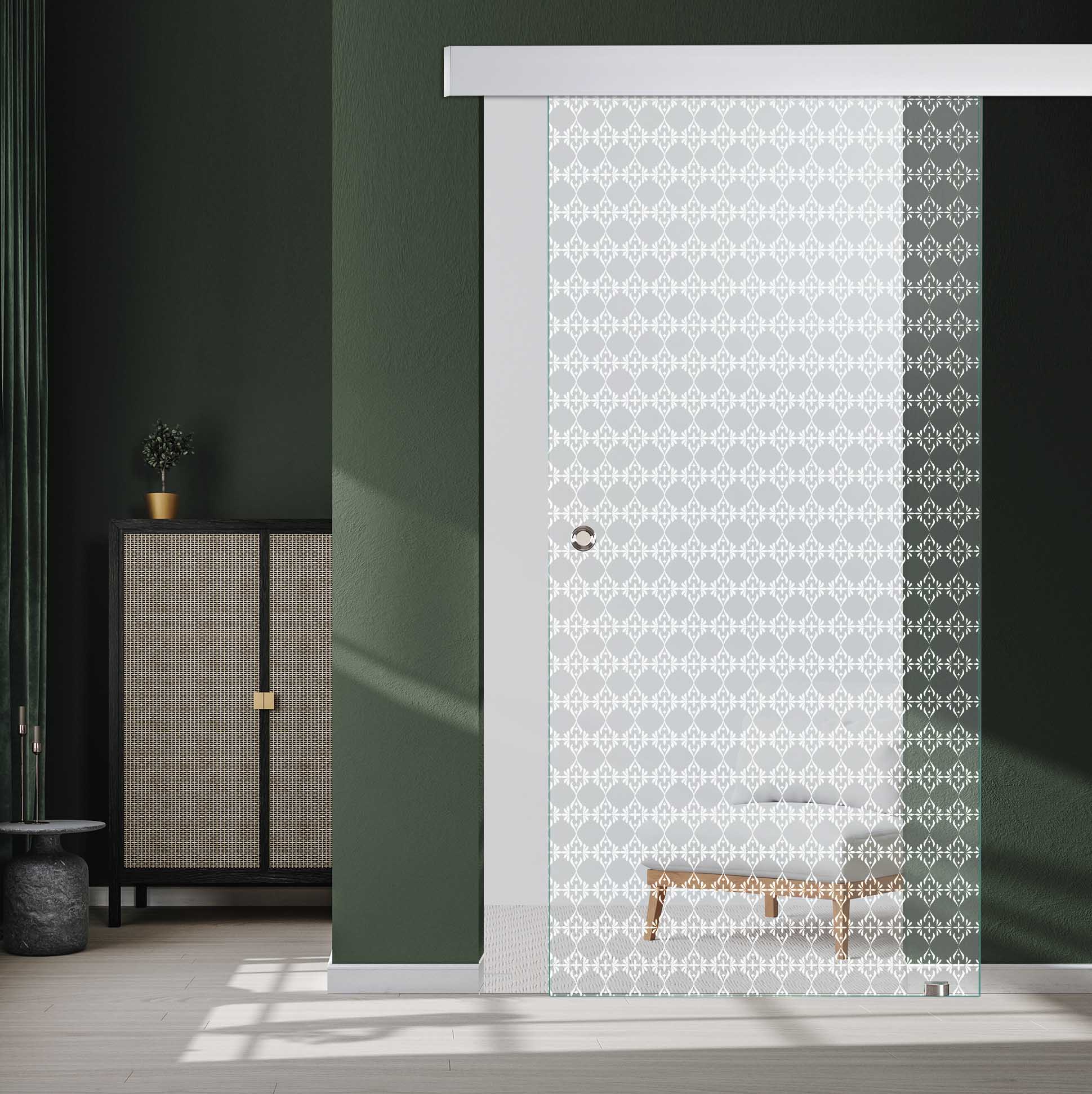 Die Glasschiebetür "Bahamas" ist eine zeitlose Schiebetür mit feinen Druckelementen.