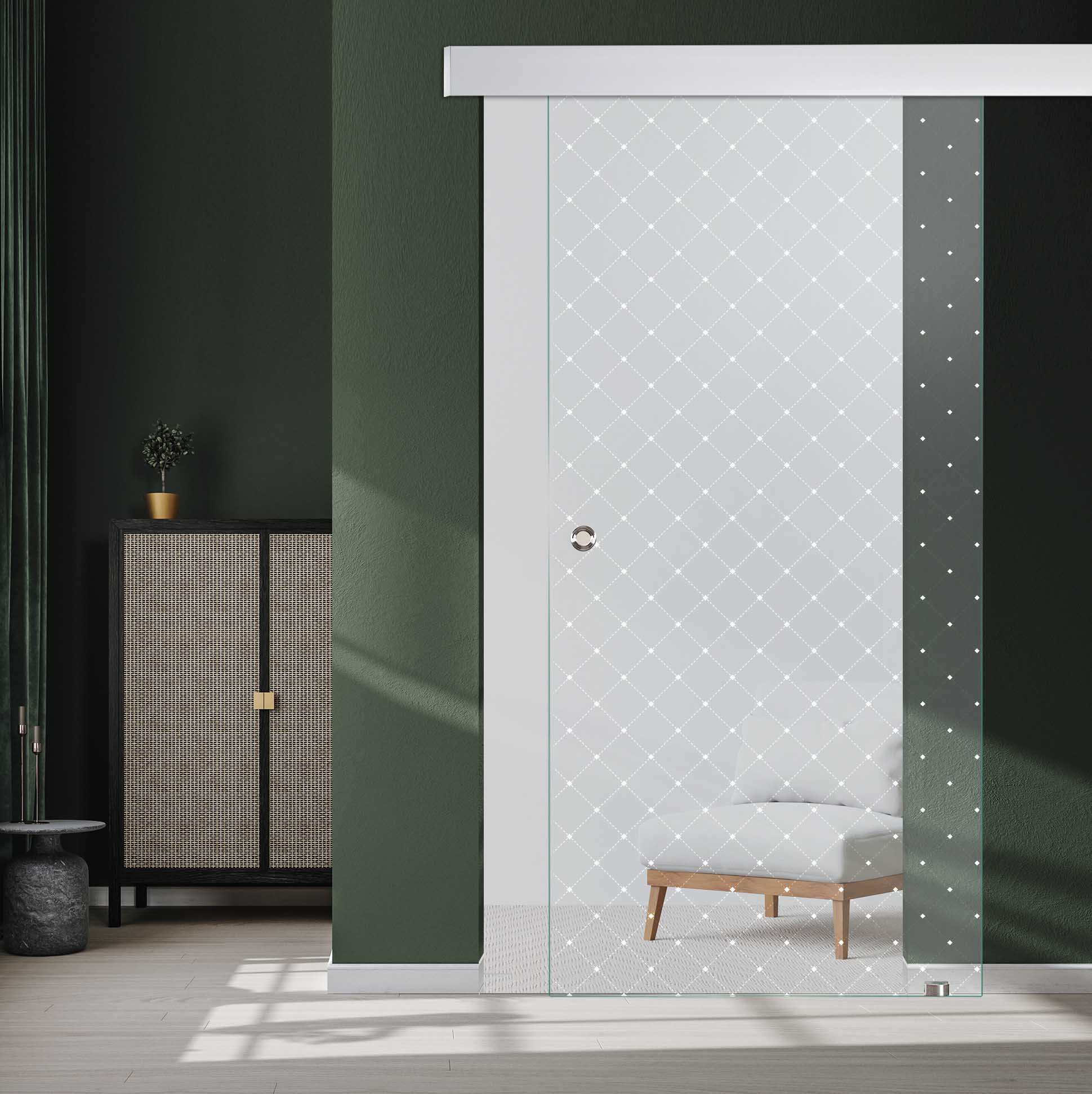 Die Glasschiebetür "Barbados" ist eine zeitlose Schiebetür mit feinen Druckelementen.